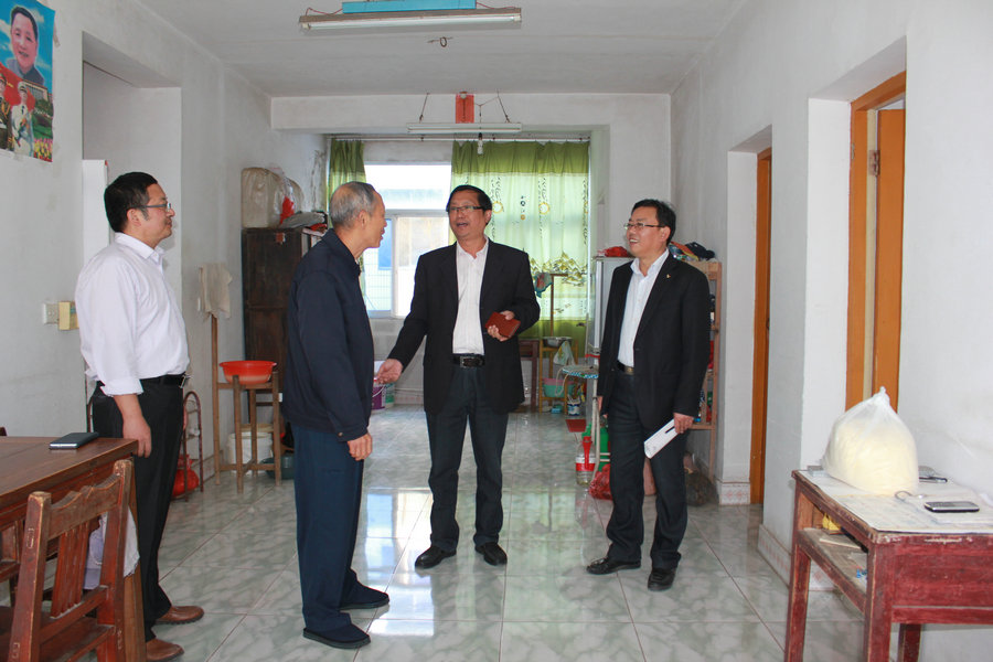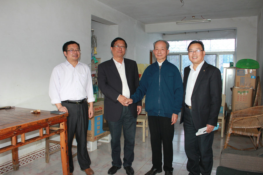 金秋十月精神爽,丹桂飘香人寿增。2015年10月21日(重阳节)上午,校长唐晓发,副校长、工会主席胡章友,工会副主席胡立新代表学校和工会走访慰问居住在校内的离退休老同志,对他们致以亲切的问候和节日的祝福。