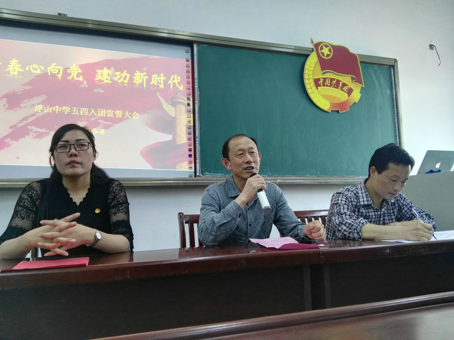 5月4日上午,浮山中学“青春心向党,建功新时代”2019年新团员入团宣誓仪式在校党团活动中心举行,校党总支书记王友明、团委书记刘东莲和团委副书记王士银等出席大会。大会由王士银主持。