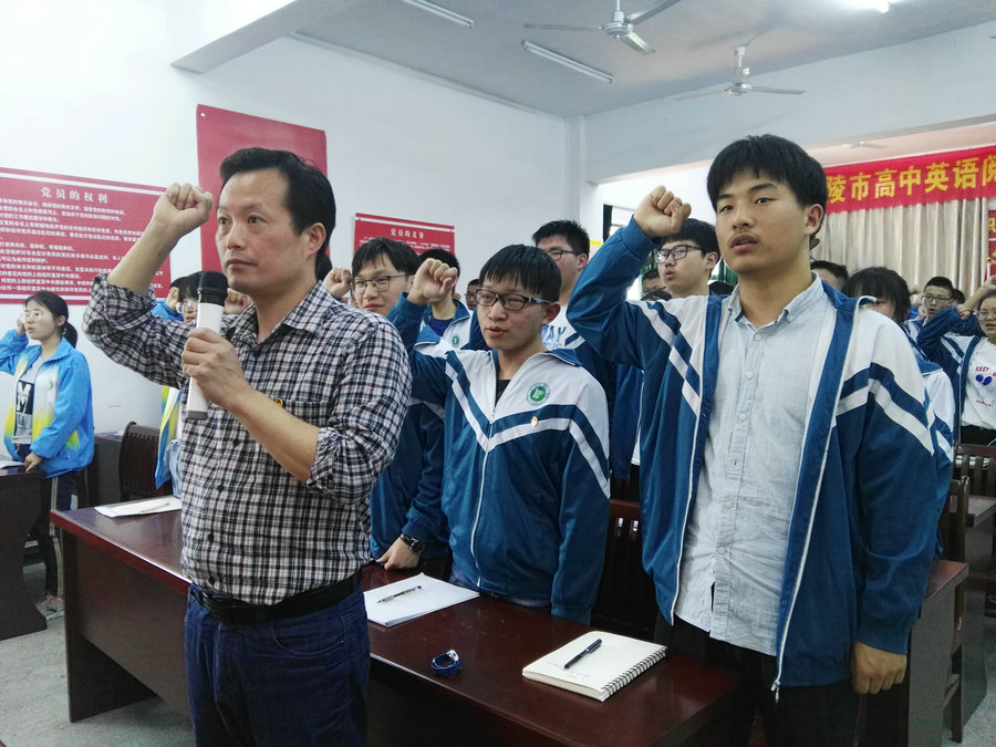 大会在雄壮的共青团团歌声中拉开序幕。全体新团员佩戴团徽,在王士银的带领下进行了入团宣誓仪式。宣誓结束后,老团员代表吴培玉在发言中提醒新团员,要时刻牢记自己是一名共青团员,要按照优秀团员标准来严格要求自己。左琦代表全体新团员郑重承诺,在今后的生活、学习中努力发扬艰苦朴素、吃苦耐劳的精神,以身作则,加强学习,不断提升自我,并起到模范带头作用。