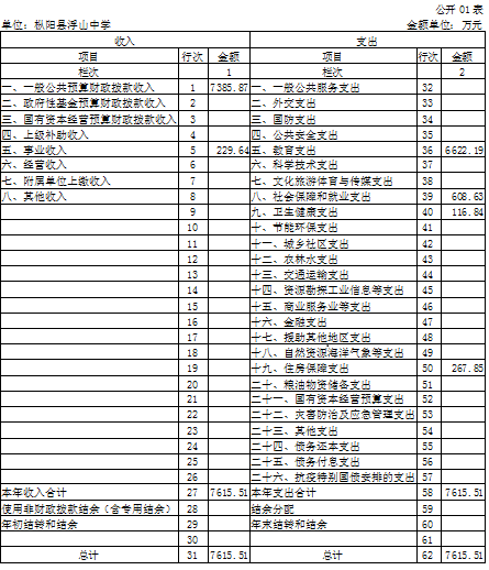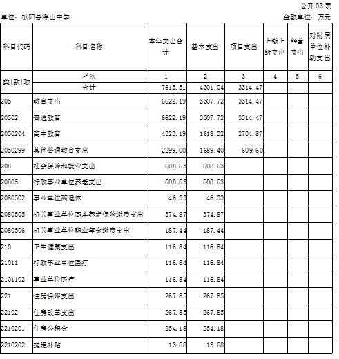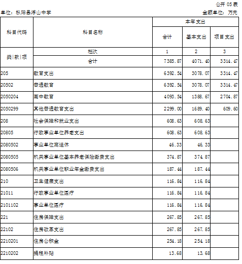 说明:枞阳县浮山中学单位没有政府性基金预算收入,也没有使用政府性基金预算安排的支出,故本表无数据。