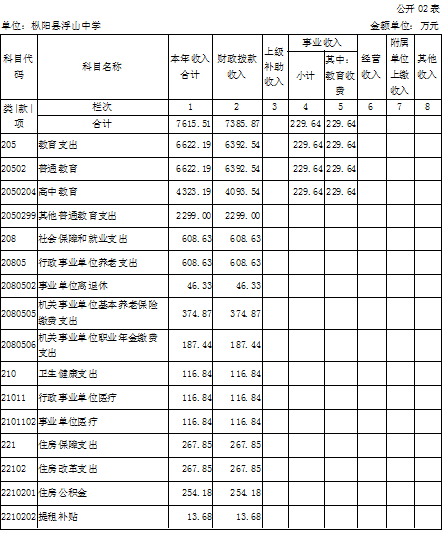 第二部分 枞阳县浮山中学2024年度单位决算表